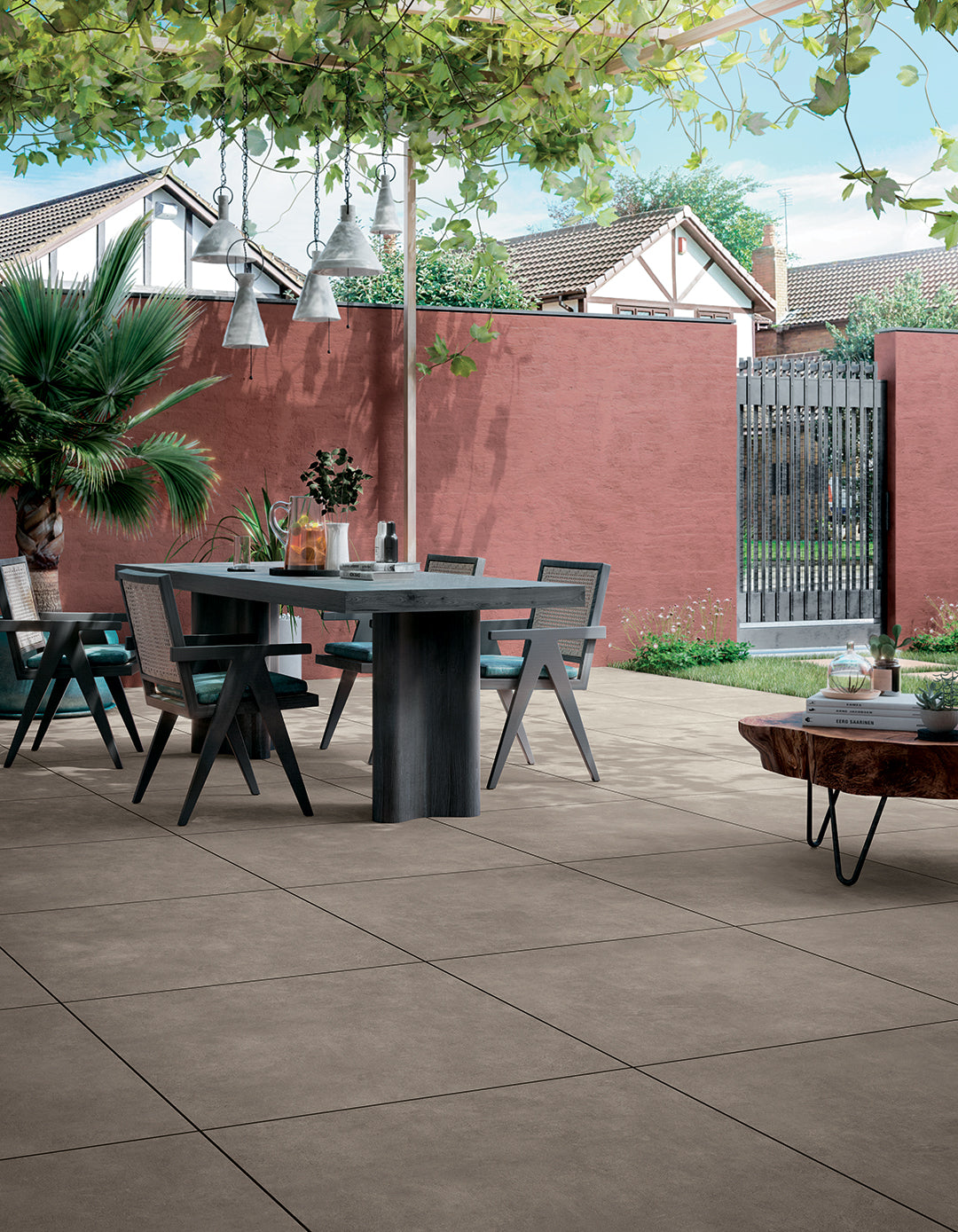 Keramikplatte in Betonoptik, Oberfläche strukturiert, Kanten leicht gefast